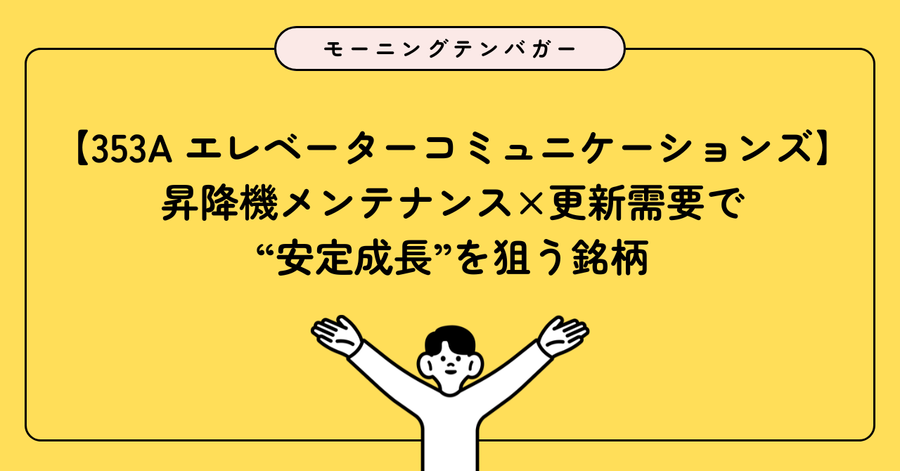 昇降機メンテナンスという“老朽化設備更新”+“保守継続”というテーマに対して、エレベーターコミュニケーションズは明確な事業ポジションを有しています。更新需要(耐用年数を迎える設備)や災害・安全意識の高まりといった環境変化も追い風といえます。