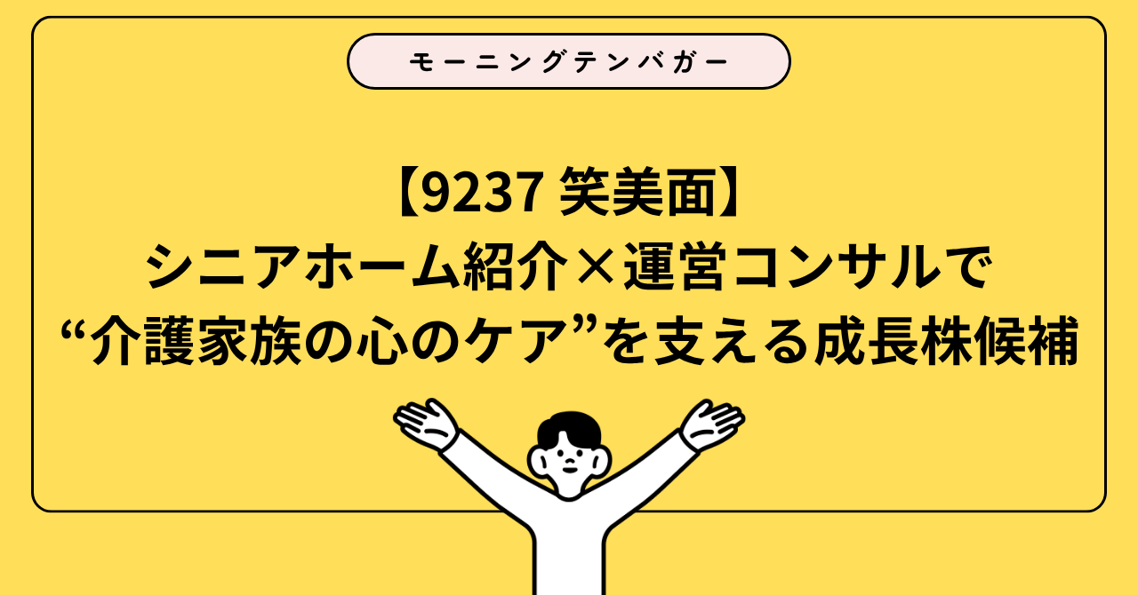 【9237 笑美面】シニアホーム紹介×運営コンサルで“介護家族の心のケア”を支える成長株候補